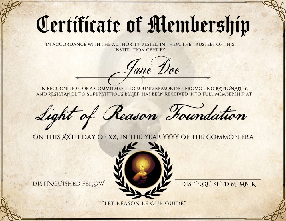 The Light of Reason Foundation welcomes applications from individuals who demonstrate a strong commitment to rational inquiry, ethical humanism, and public education. Membership supports our ongoing work to encourage informed dialogue and evidence-based decision-making. Interested applicants may apply below for consideration by our board of directors.